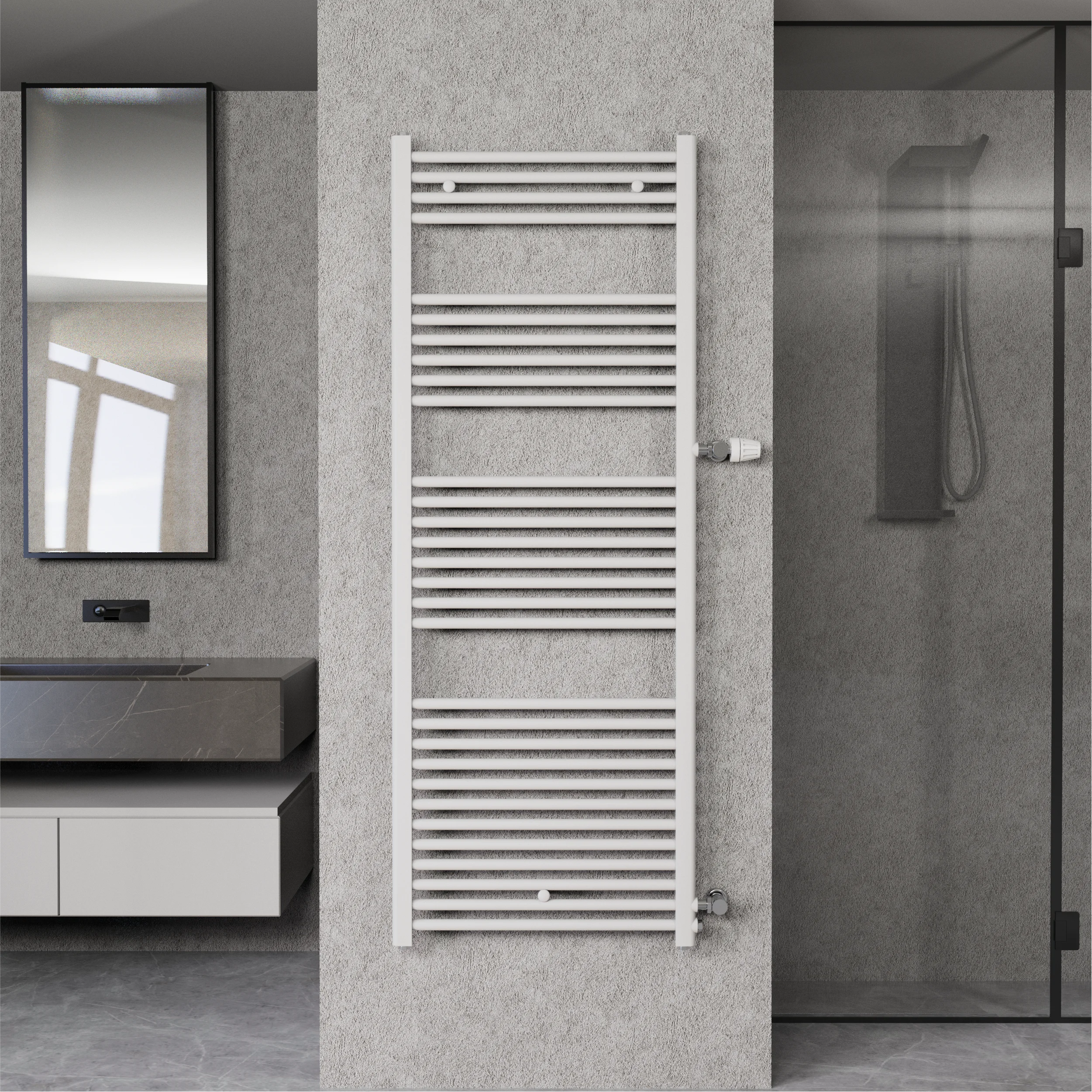 Seine Beständigkeit gegenüber kalkhaltigem Wasser macht ihn zu einer nachhaltigen Wahl für Ihr Zuhause. Nach einer entspannenden Dusche können Sie sich in ein warmes Badetuch kuscheln, während der Heizkörper für eine behagliche Raumwärme sorgt. Mit seinem zeitlosen Design fügt sich der Austauschheizkörper mühelos in jedes Wohnambiente ein und wird zu einem echten Blickfang in Ihrem Zuhause.